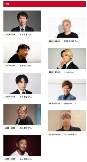 さらに、起業家の堀江貴文氏(ホリエモン)やYouTuberのヒカル氏といった著名ゲストも登壇予定です。