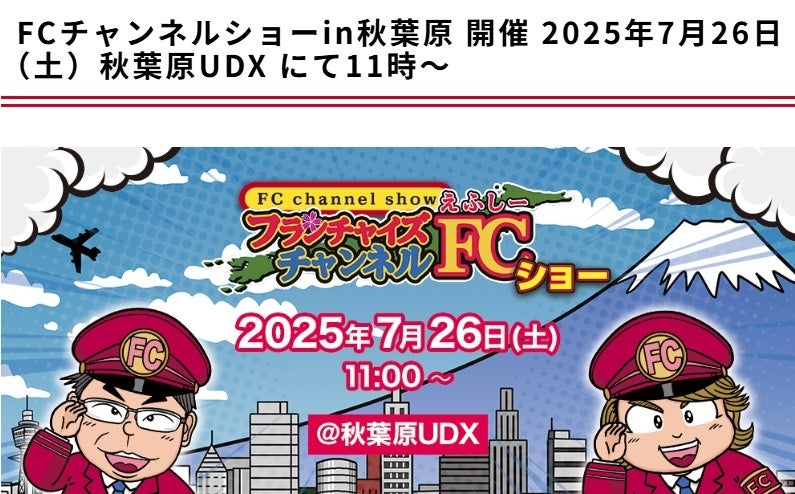 本イベントでは、当社以外にも多数のフランチャイズ本部が出展を予定しており、ビジネスオーナー・独立開業希望者にとって新たな出会いや機会に満ちた場となります。