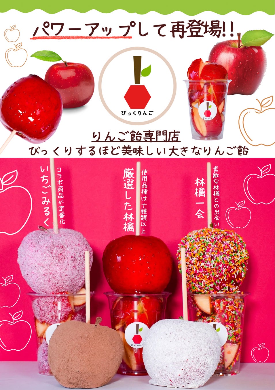 POP UPで販売を行う「びっくりんご」は、昨年全国10拠点以上で販売を行った「びっくりするほど美味しい大きなりんご飴」をコンセプトにしているりんご飴専門店です。