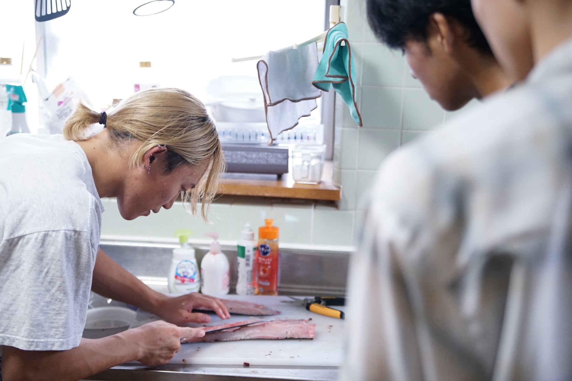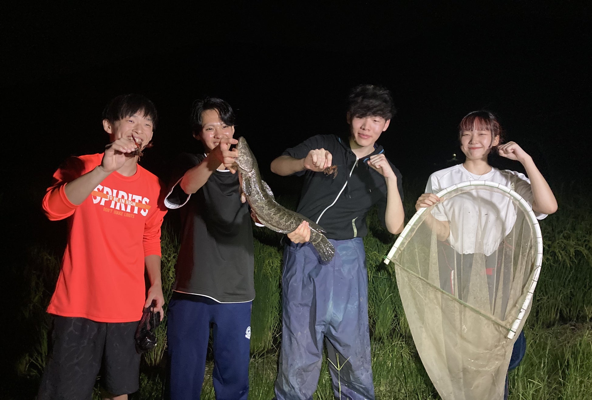 石巻専修大学のメンバーと一緒に、地域に生息する外来種や未利用魚を捕獲して、調理し食べるところまで実践します。外来種による環境問題や命の尊さを学びます。