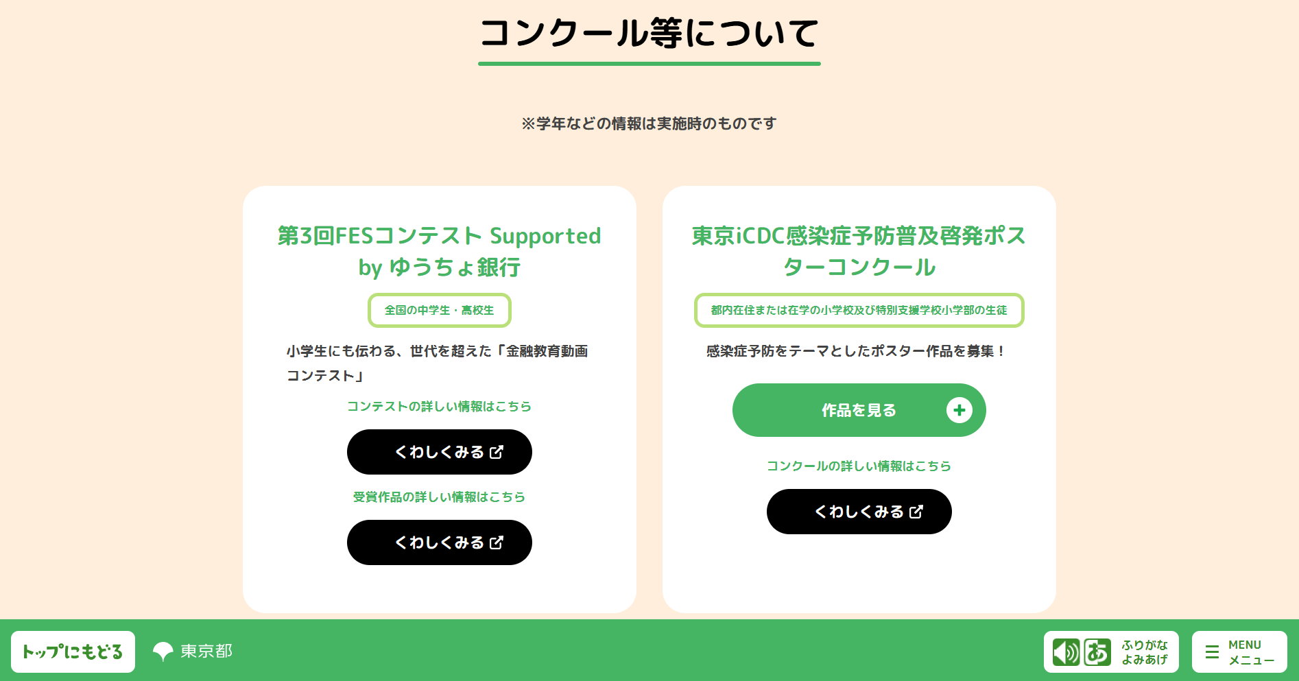 「東京都こどもホームページ」の「コンクール受賞作品ページ」において、金融教育動画コンテスト「FESコンテスト®」が「小学生にも伝わる、世代を超えた金融教育動画コンテスト」として紹介されています。