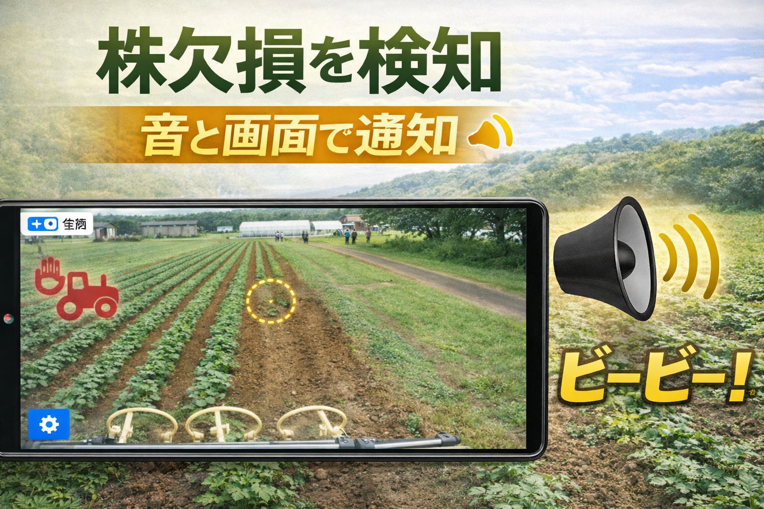このような問題は収量低下の原因となる場合があり、作業中に株欠損を把握できる仕組みが求められていました。