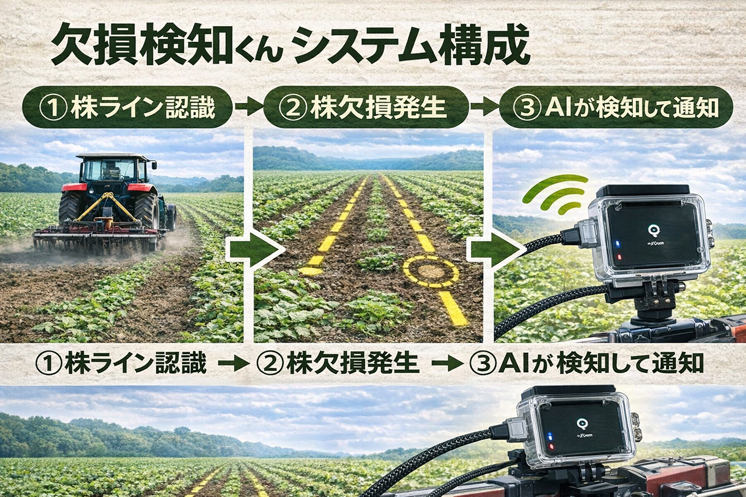 農業用機器の販売・サポートを行う ALLYNAV AG 株式会社(本社:北海道) は、畦間除草カルチ作業中に発生する作物の株欠損をリアルタイムで探知し、作業者へ通知するAIカメラシステム 「欠損探知くん」 の提供を開始しました。