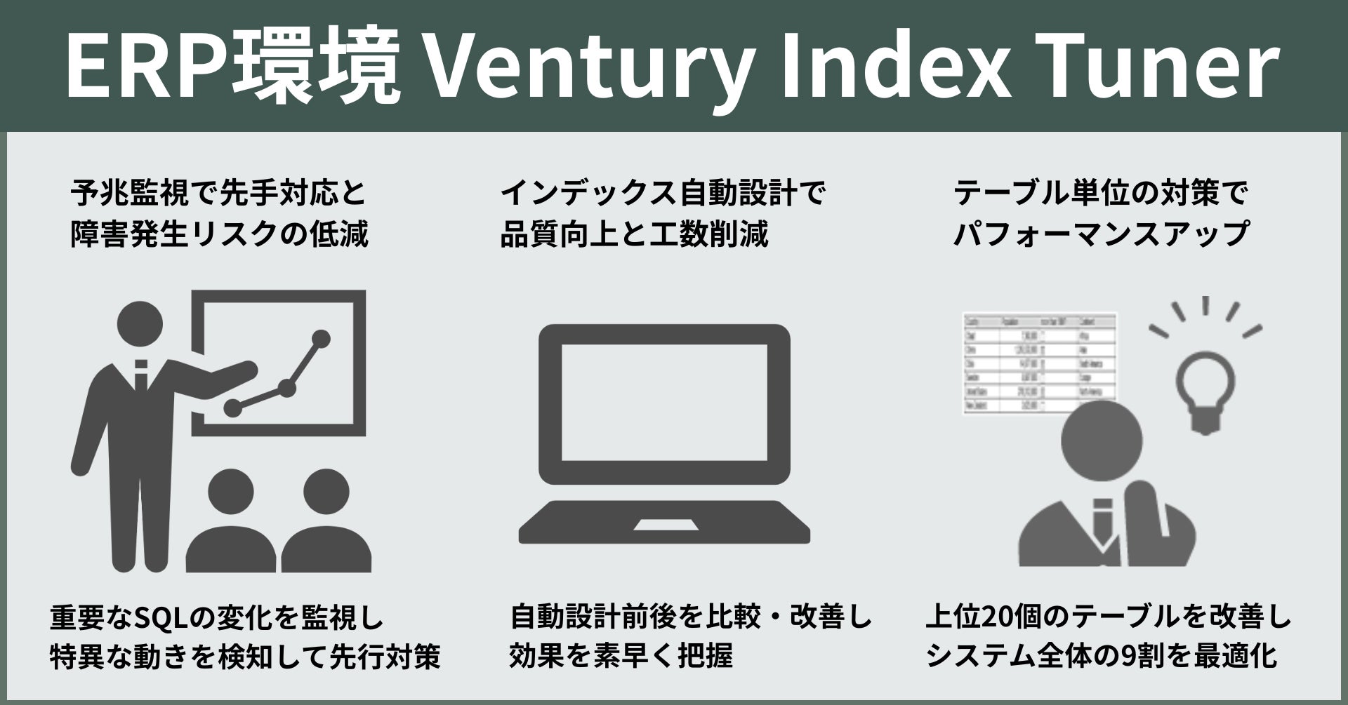 JD Edwards EnterpriseOne(以降JDEと表記)環境で稼働するOracle Databaseを対象に、インデックス設計・適用を属人化させず、限られた人員でも性能改善を継続できる仕組みとして「JDE環境向けOracleDB Ventury Index Tuner」の提供を開始しました。属人的になりがちなインデックス設計を自動化し、短期間で効率的な性能改善と運用負荷の軽減を実現します。
