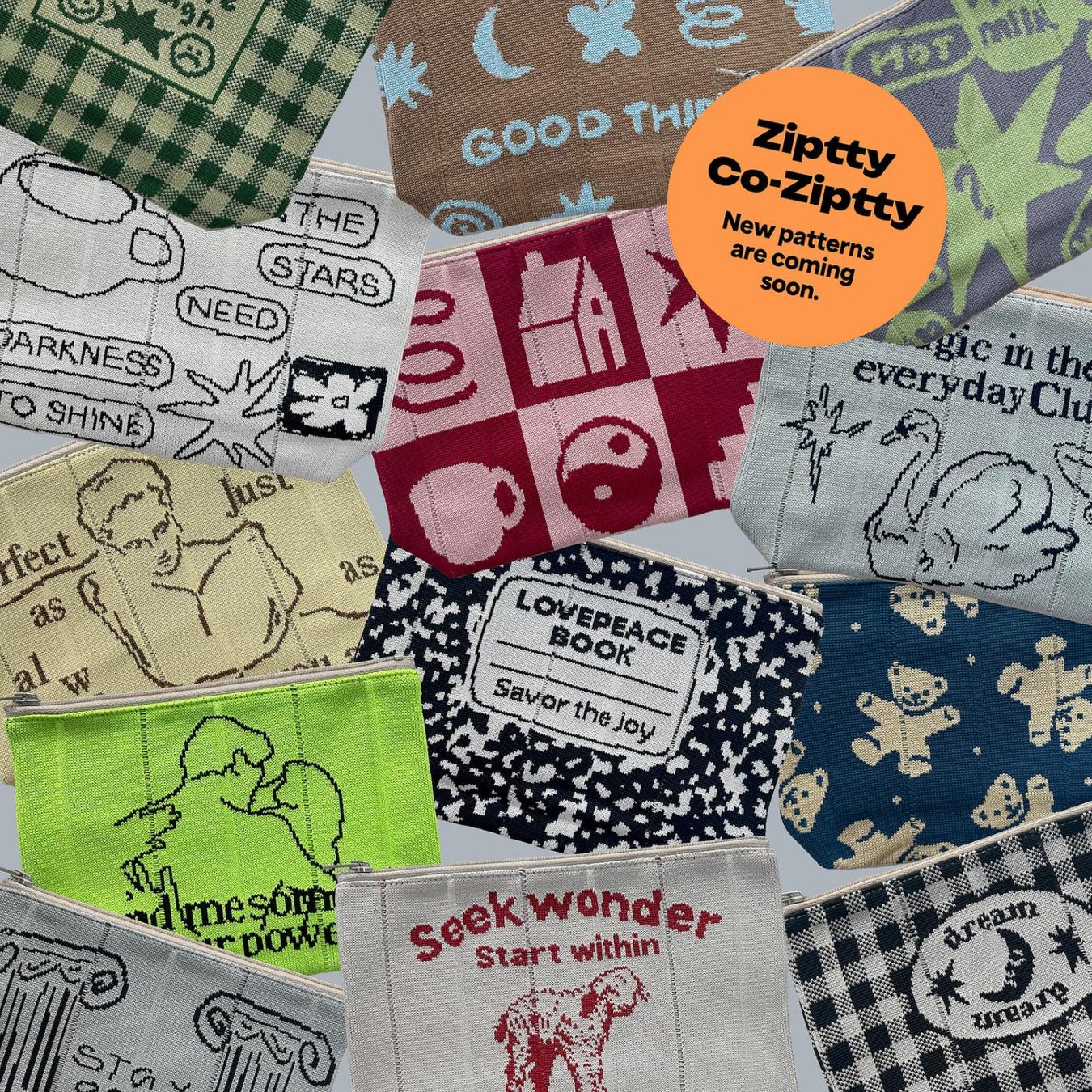 Co-Zipttyは全11種類展開。リサイクルポリエステルを使用したポーチ。「Ziptty」より少し小さめのサイズで、形はZipttyと同じ。マチ付きで程よい伸縮性があるため、収納力も抜群です。コンパクトなので嵩張らず、リップなどの小物入れにぴったりです。