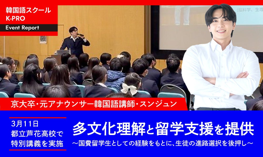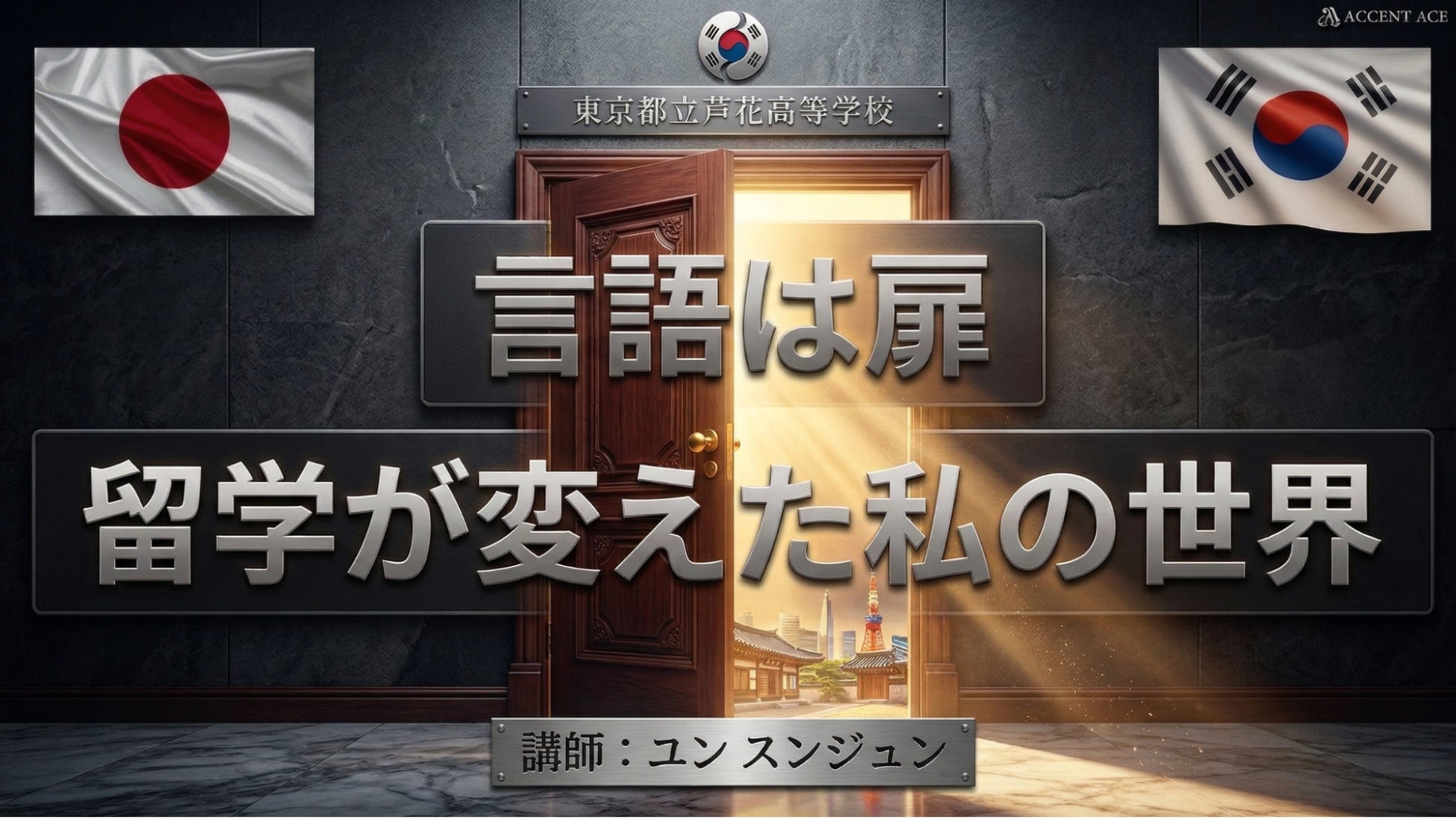 韓国語教育事業およびオンラインスクール運営を手掛ける株式会社アクセントエース(本社:東京都中央区、代表:ユン・スンジュン)は、2026年3月11日(水)、東京都立芦花高等学校にて、多文化理解および海外留学をテーマとした特別講義を実施いたしました。