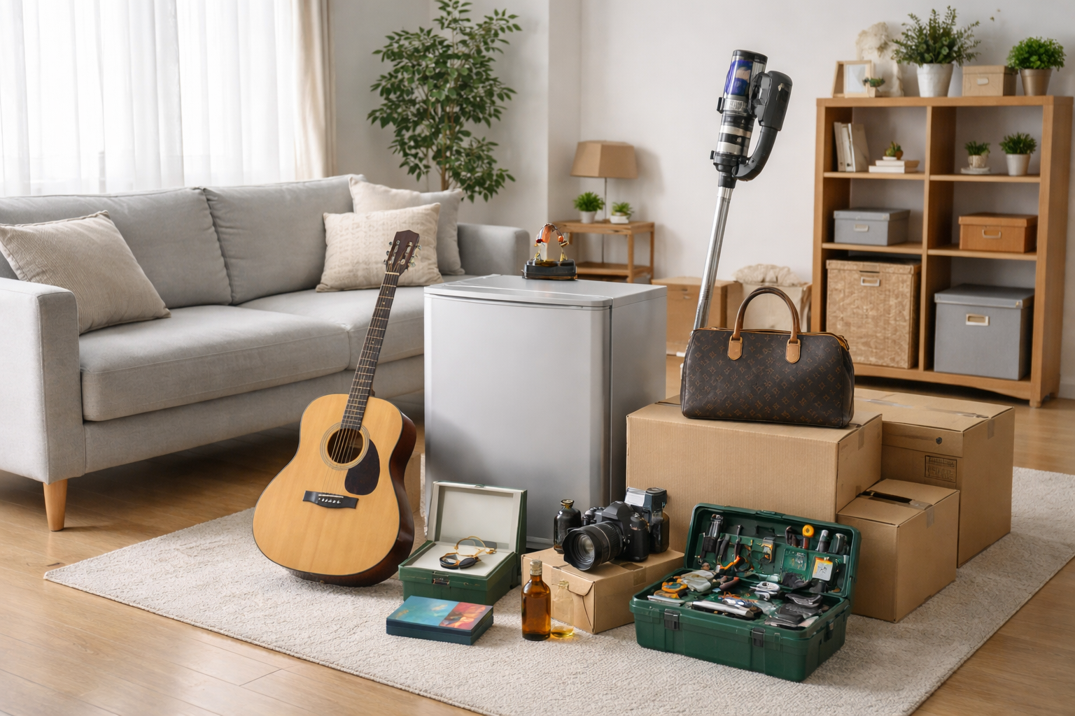例えばブランド家具(カッシーナ・カリモク)、大型家具、大型家電、ホビー、工具、骨董