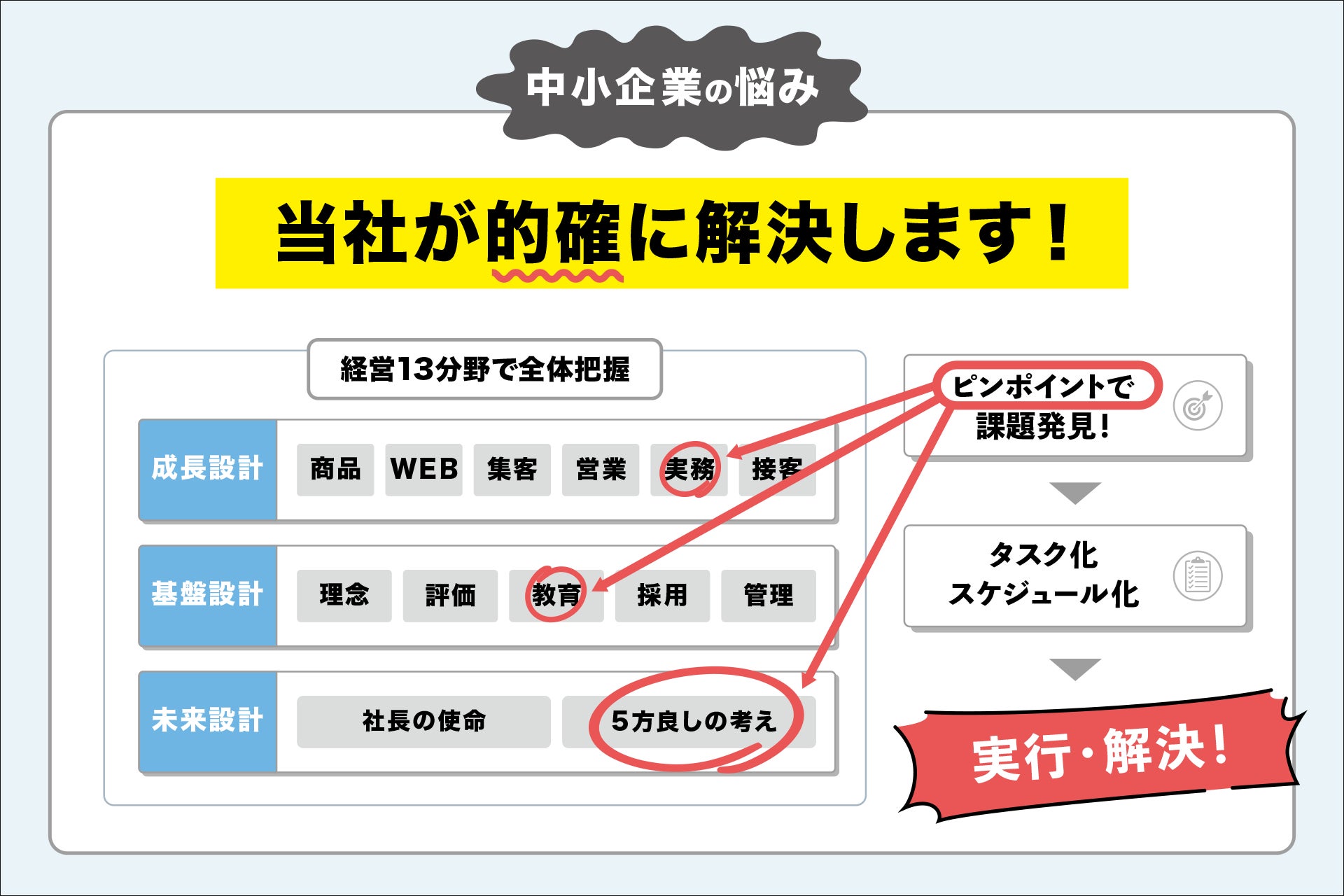 売上・利益・組織・戦略・理念などを多角的に分析し、