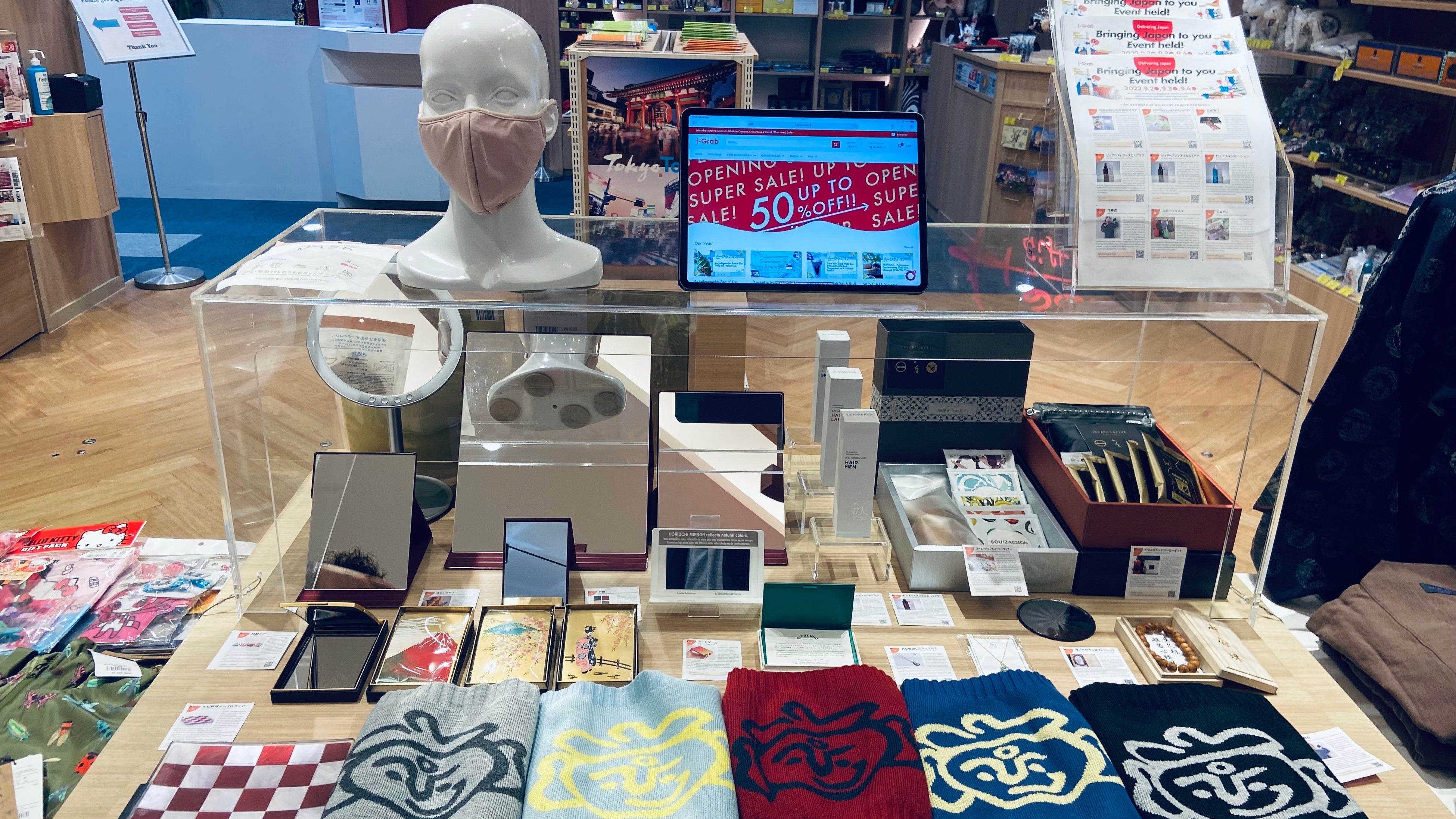 また業務提携をしている株式会社JTBは、日本発の越境ECプラットフォーム「j-Grab Mall」に出品されている商品を、EC活用型テストマーケティングイベントとして海外3ヶ所(カンボジア・シンガポール・アメリカ)にてショールームストアを開催、現地スタッフが消費者のニーズや好みなどの反応を収集します。