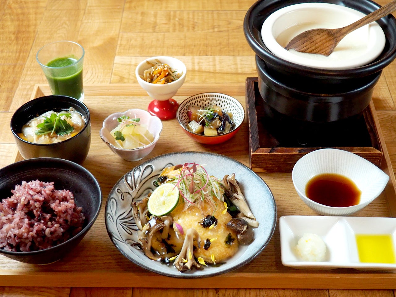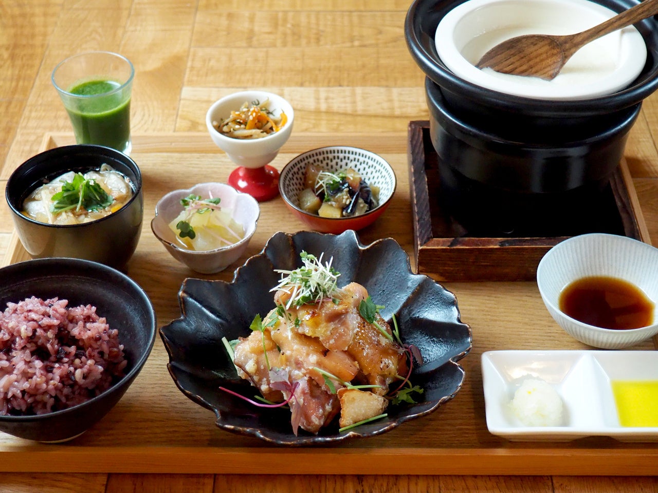 古くから親しまれる和食の基本形"一汁三菜"に三菜を付け加えた、「一汁六菜定食」をお届けするレストランです。