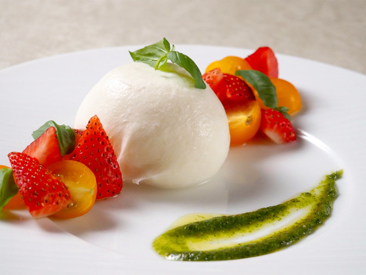 濃厚でクリーミーなブッラータチーズと、甘味と酸味のバランスの良いあまおうとのマリアージュをお楽しみください。
