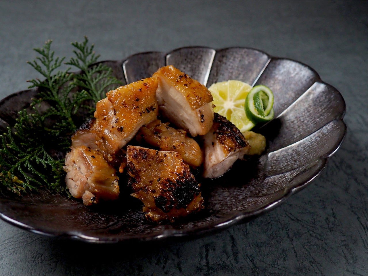 塩麹に漬け込んだはかた地どりのもも肉を、じっくりと香ばしく焼き上げました。口に広がる脂の甘みと、もも肉の食感をお楽しみください。