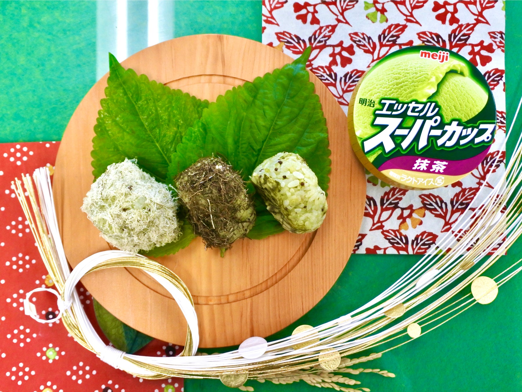 明治 エッセル スーパーカップ 抹茶の風味がふわっと香り、えごまのプチプチとした食感も楽しめる一品です。