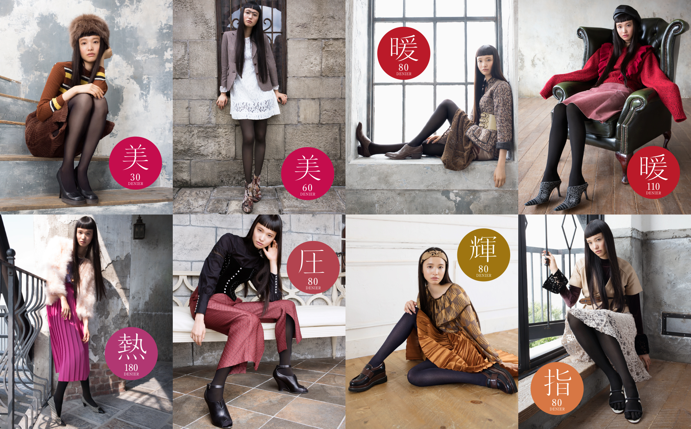 2011年秋冬シーズンから加わったプレーンタイツは、デニール(透け感)がもたらす陰影の効果やニュアンスの違いをスタイリングに取り入れる美意識を喚起。温かさに優れるのは勿論のこと、「美しさで選ぶタイツ」として女性達の支持を集めています。