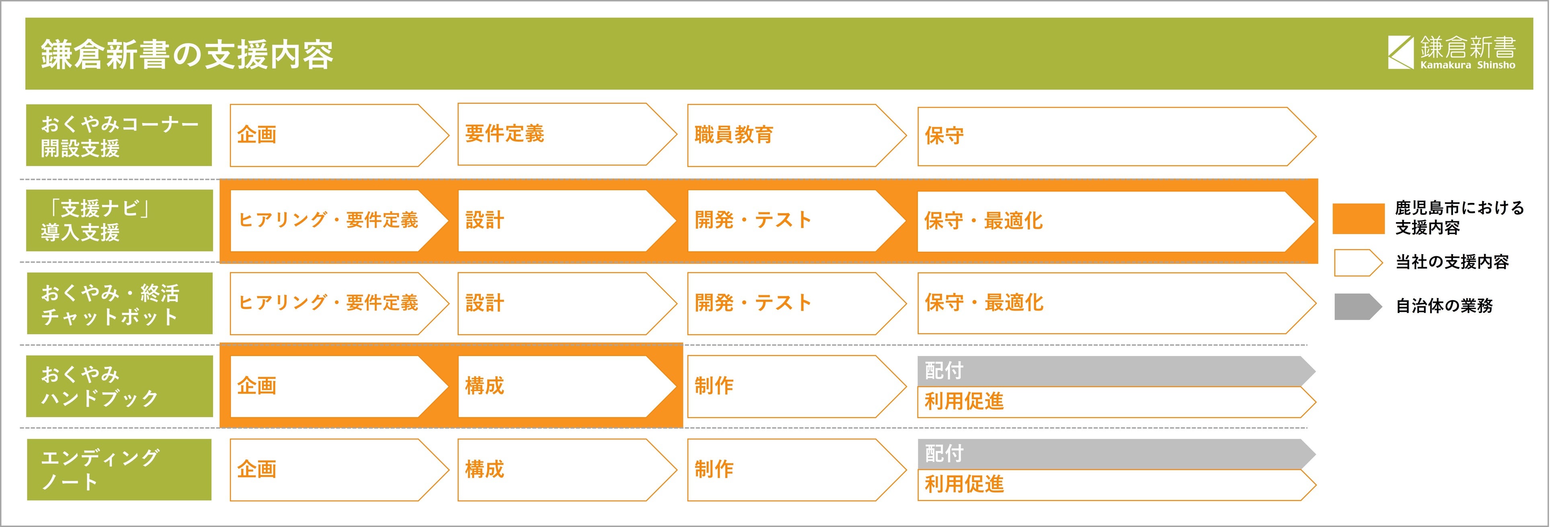 ‘終活’に関するさまざまなサービスを提供する株式会社鎌倉新書(東京都中央区、代表取締役社長COO:小林 史生、以下:当社)の官民協働事業は、鹿児島県鹿児島市において、当社初めての事例である「おくやみコーナー設置自治体支援ナビ(開発:内閣官房、以下:支援ナビ)」の導入をサポートしました。これにより死後手続きの大部分がワンストップになり、遺族の負担を軽減することができます。