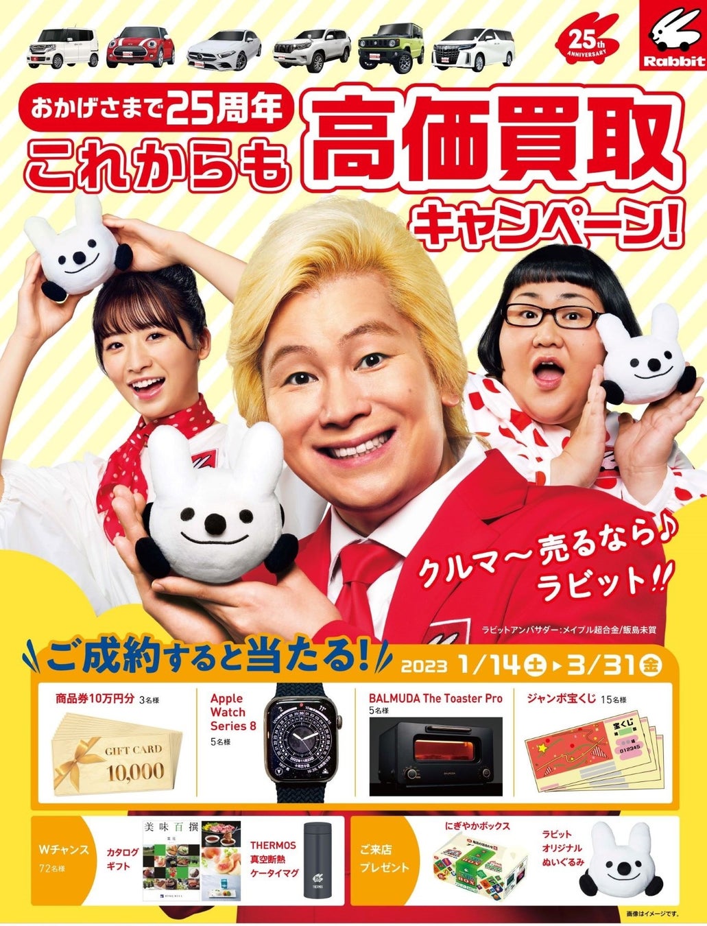 「クルマ~売るなら~ラビット♪」クルマの買取・販売ラビット 「おかげさまで25周年 これからも高価買取キャンペーン!」を実施中!!