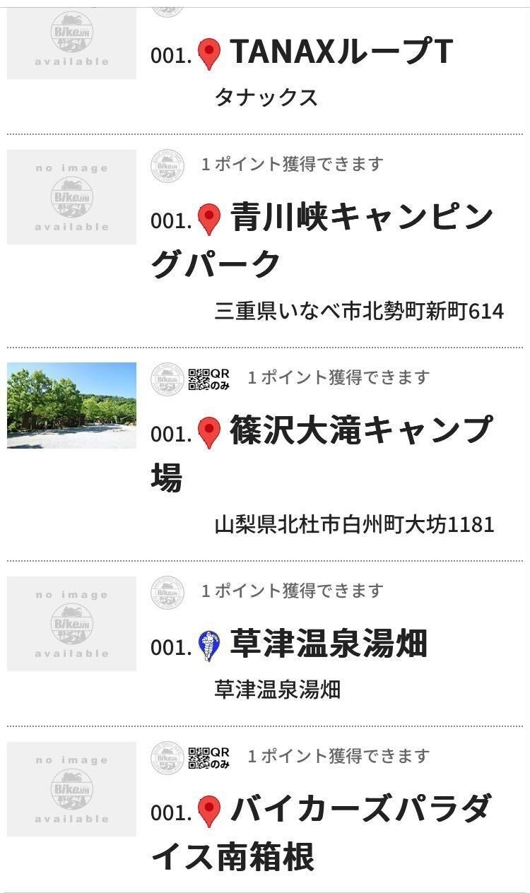 指定されているスポットは、編集部が自信を持ってお勧めするツーリングスポットや、ライダーズカフェ、バイクイベント、バイクの用品店など、様々な場所がスポットの候補になっています。