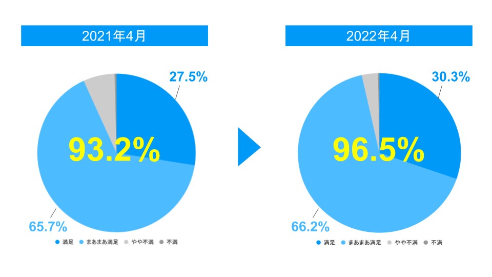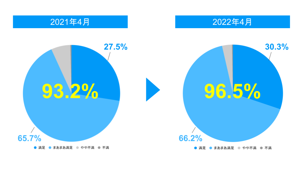 2022年4⽉に実施した顧客満足度調査の結果、96.5%※3がサービスに満足しているという結果になりました。