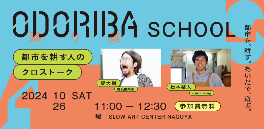 10/25(金)・10/26(土)、名古屋・栄の「SLOW ART CENTER NAGOYA」に、2日間限りの実験区「ODORIBA」が出現します。