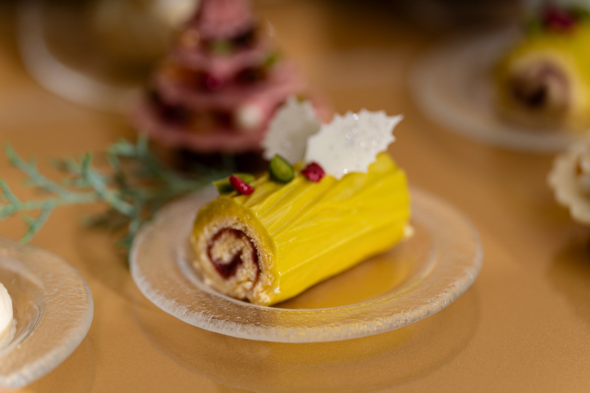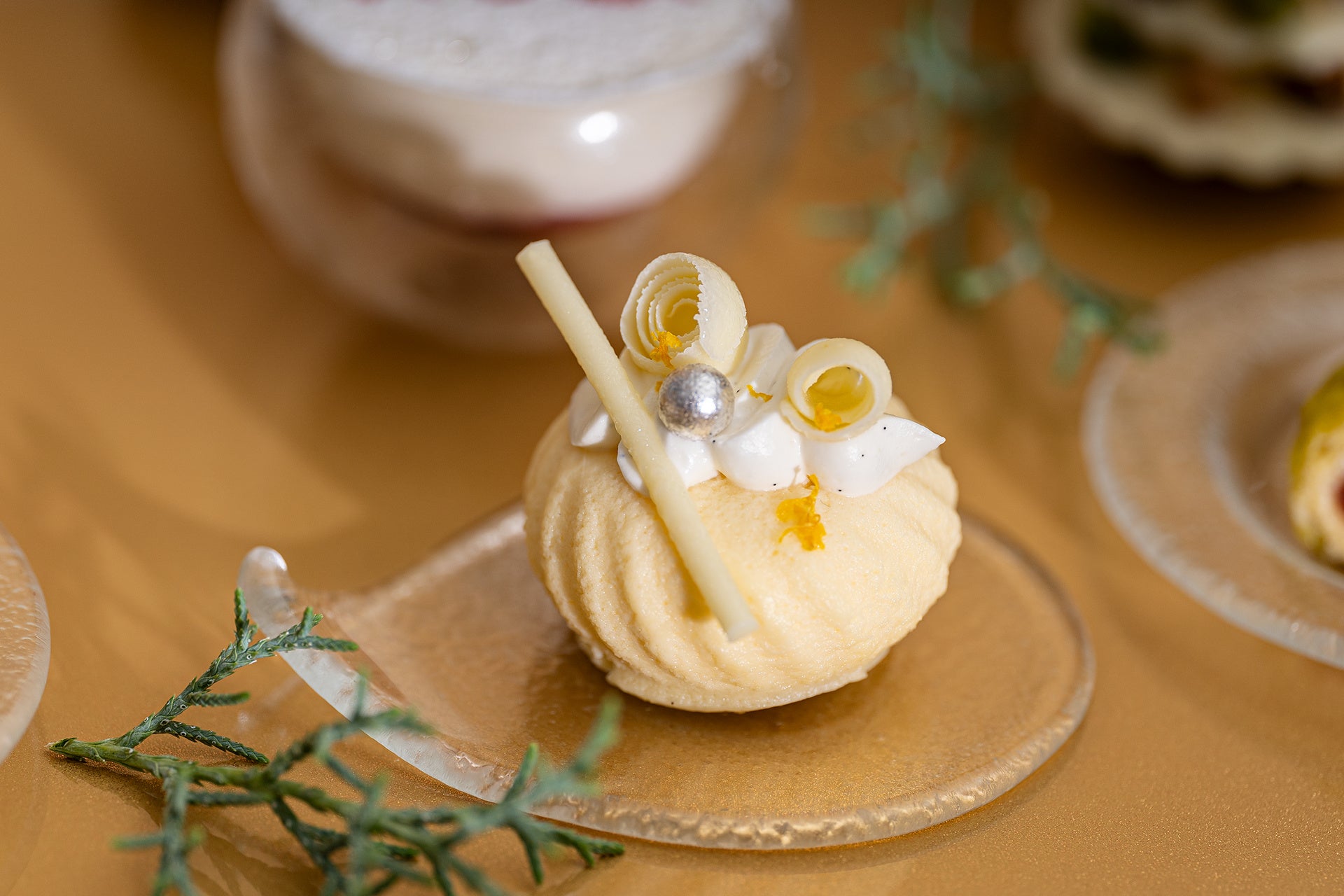 クリスマスにぴったりのプティブッシュドノエルや、降り積もる雪をイメージしたベリーのティラミス、冬に薫り高いトリュフのグラチネなど、まるで宝箱のようなゴールドに輝くBOXに彩られた、“8種のスイーツ&セイボリー”。コース仕立てが特徴となり、BOX他、一品目にシグネチャーの“フォアグラマカロン”、スペシャリテのとろけるくちどけの“焼き立てフレンチトースト“、淡路島で育てられた希少な生乳“匠”をパティシエがその場で出来立てのジェラートをおつくりいたします。今季しか味わえない「コフレ・ド・ノエル」を存分にお楽しみください。