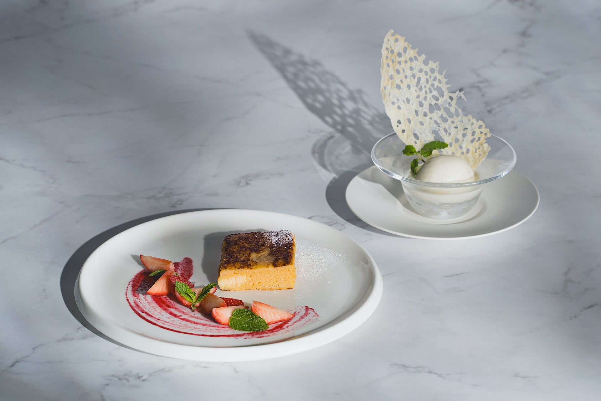 上記スイーツ&セイボリー計8種の他、アミューズのフォアグラマカロン、スペシャリテとして焼き立て“フレンチトースト”と、淡路島の希少な生乳「匠」を使用した“ミルクジェラート”を出来たてでご用意いたします。