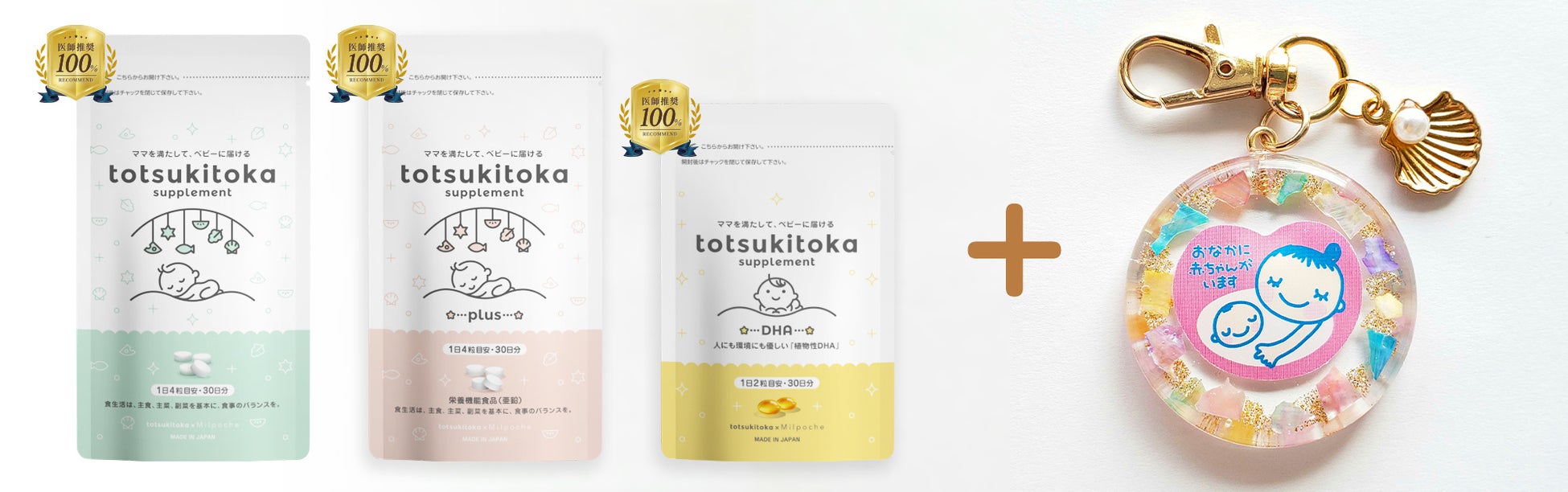 妊活サポートアプリ「konotoki」や妊娠記録アプリ「totsukitoka」を運営するアマネファクトリー株式会社(本社所在地:東京都渋谷区代表取締役齊藤慶武)が出産内祝いのギフトサイト「Milpoche」を運営する株式会社メリックス(本社所在地:大阪市北区代表取締役社長豊饒賢造)とともに提供する「トツキトオカサプリメント」「トツキトオカサプリメントplus」「トツキトオカサプリメントDHA」(セット品を含む)の定期便をキャンペーン期間中(~2025年1月31日まで)に新規ご契約いただいた方から【毎月・抽選で50名様】に「kimie. オリジナルマタニティチャーム」をプレゼント!