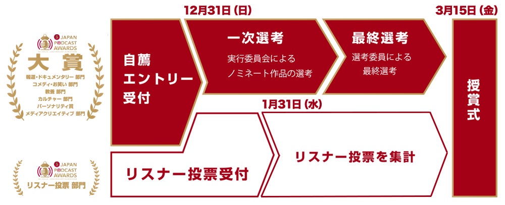 2023年12月8日(金)~2024年1月31日(水) リスナー投票受付 2024年3月15日(金) 授賞式にて、受賞作品発表 |