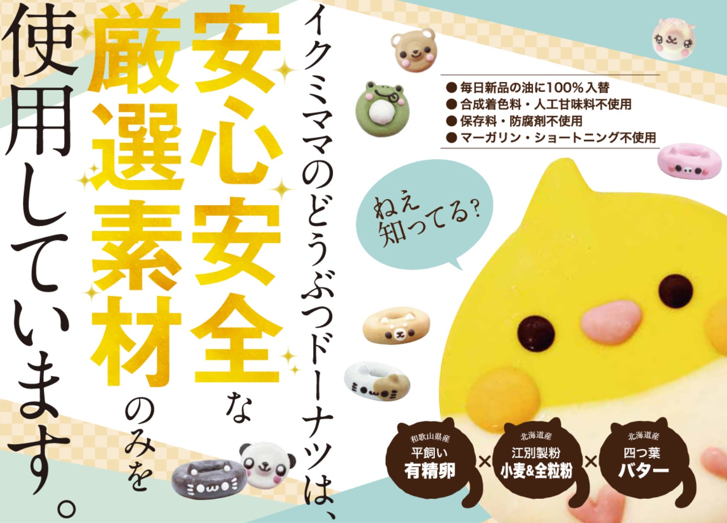 イクミママのどうぶつドーナツは、かわいいだけではなく原材料にもトコトンこだわっています。