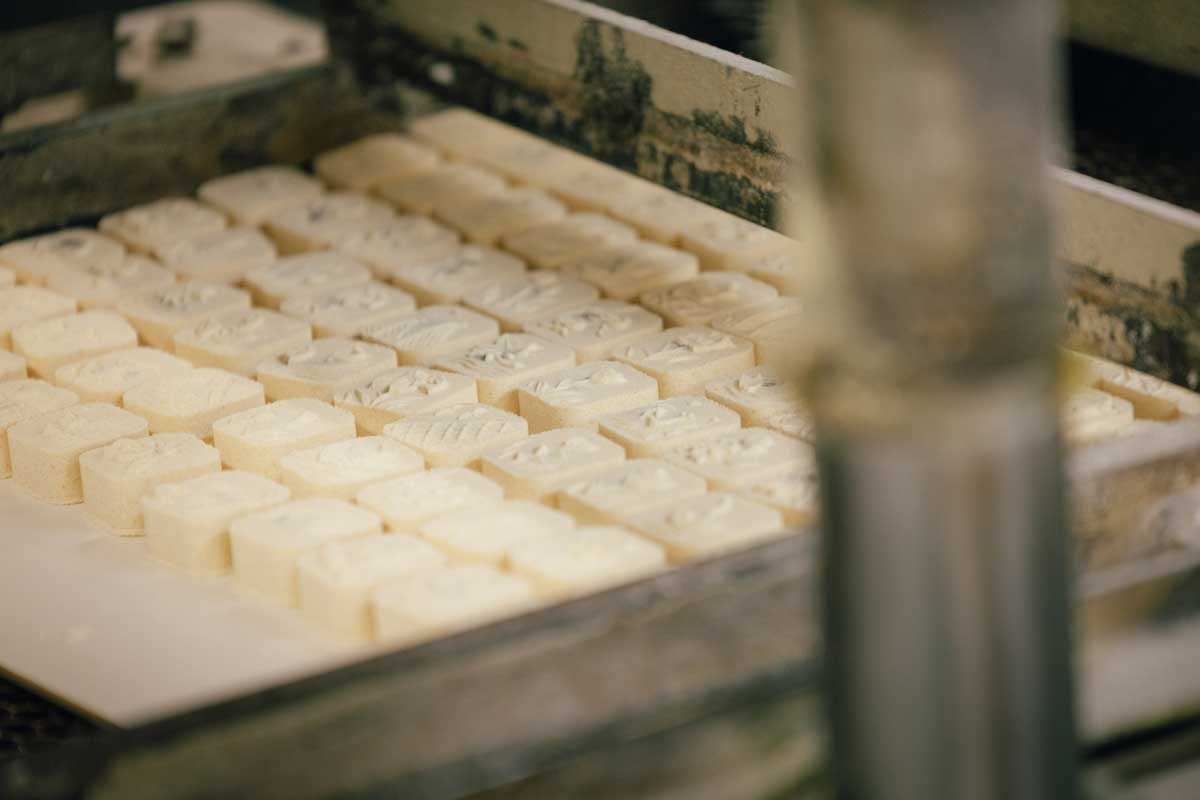 落雁とは、お米や麦、豆などの穀類をすり潰した粉に水飴や砂糖を混ぜ、型に押し固めて乾燥させた干菓子で、非常に硬いイメージですが、日親製菓は「親しみやすい和菓子」を目指し、口溶けのいい柔らかさを追求した、「硬くない落雁『ソフト落雁』」で専業化。独特のやわらかさに加え、原材料に油脂を一切使用せず、本来の自然の味と香りを大切にしています。