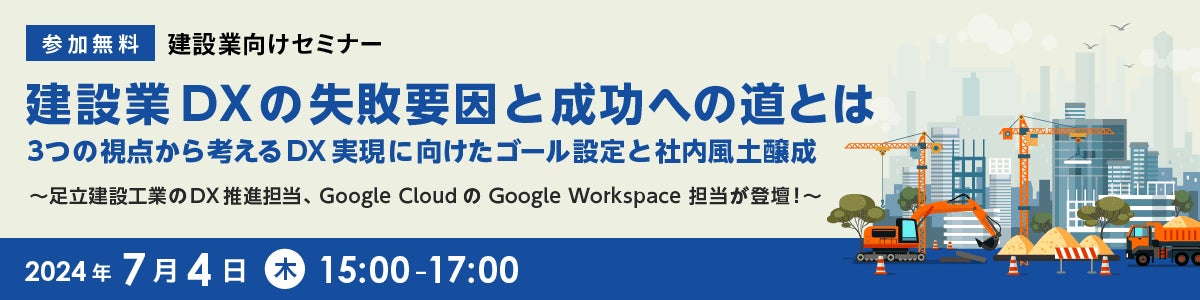 rakumo では、足立建設工業の大崎氏、Google Cloud のGoogle Workpace 担当が登壇する無料のセミナーを7月4日15時から開催します。