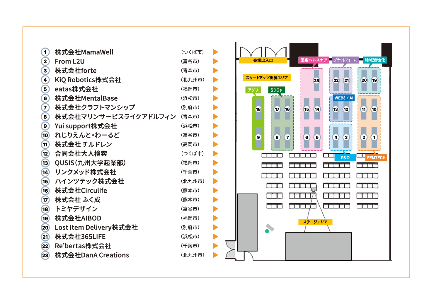 ◆参加スタートアップのブースレイアウトが決定