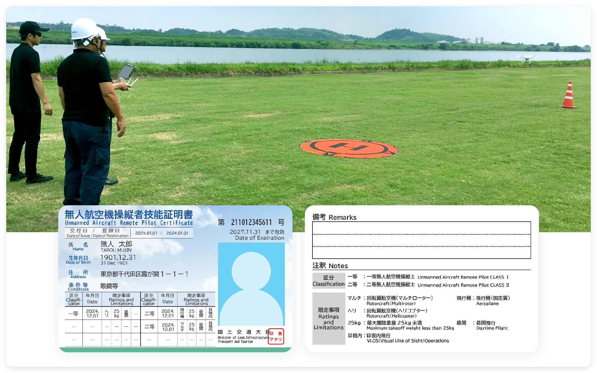 2022年12月にドローンの国家資格である「無人航空機操縦者技能証明制度」が制定されました。この度、CLUEは国土交通省から登録講習機関の認定を受け、国家資格取得のための学科および操縦実技の講習の提供を開始しました。