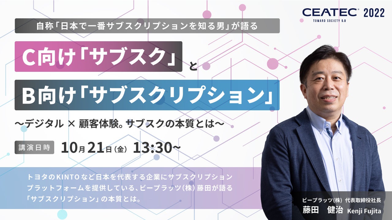 ビープラッツ株式会社(本社:東京都千代田区、代表取締役社長:藤田 健治、以下、ビープラッツ)は、2022年10月1日(土)~31日(月)に開催される「CEATEC 2022」に出展いたします。また、2022年10月21日(金) 13:30より、オンラインセミナーに登壇いたします。