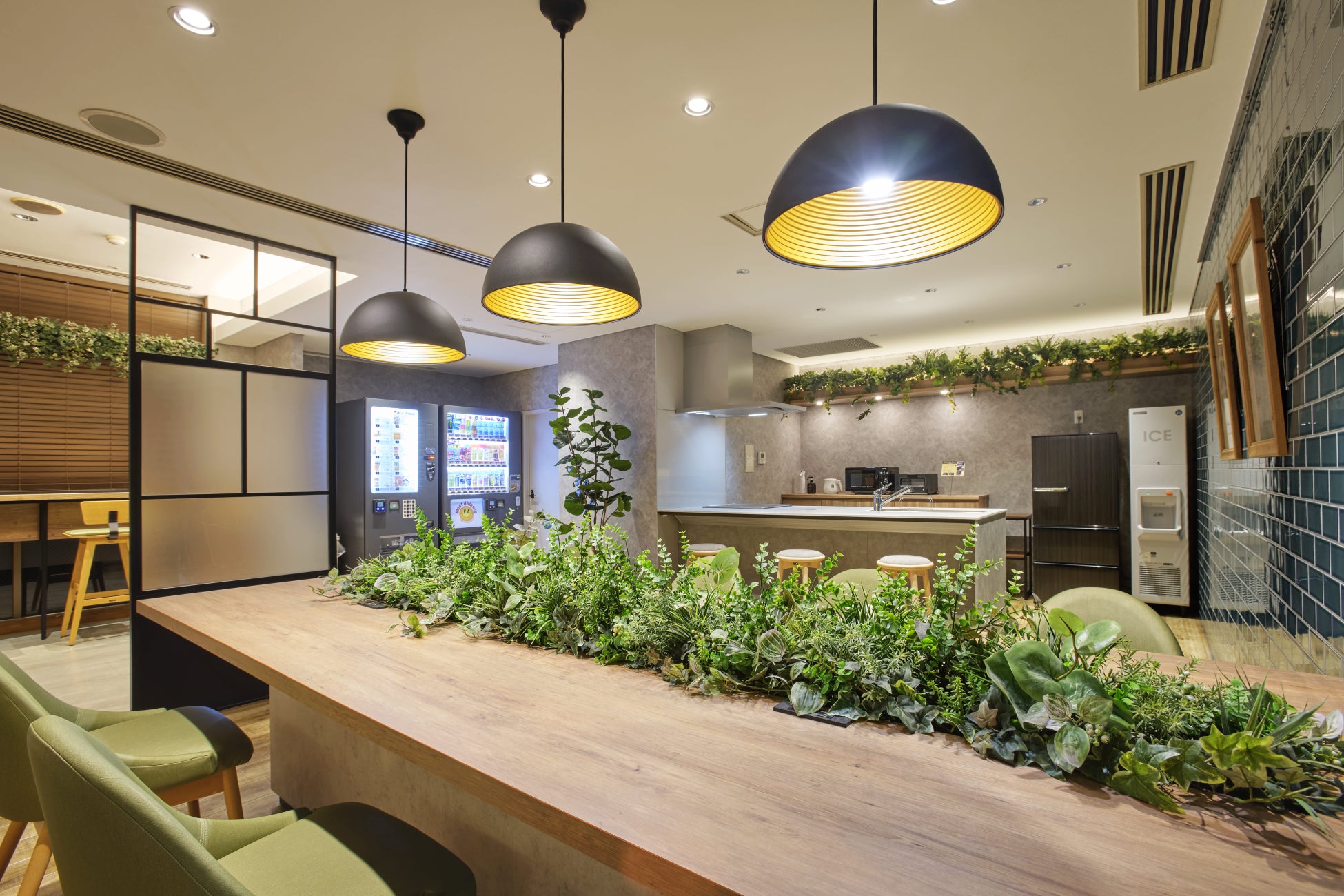 ●滞在中にも仲間などと簡単な調理をしたり雑談を楽しめるシェアキッチン。