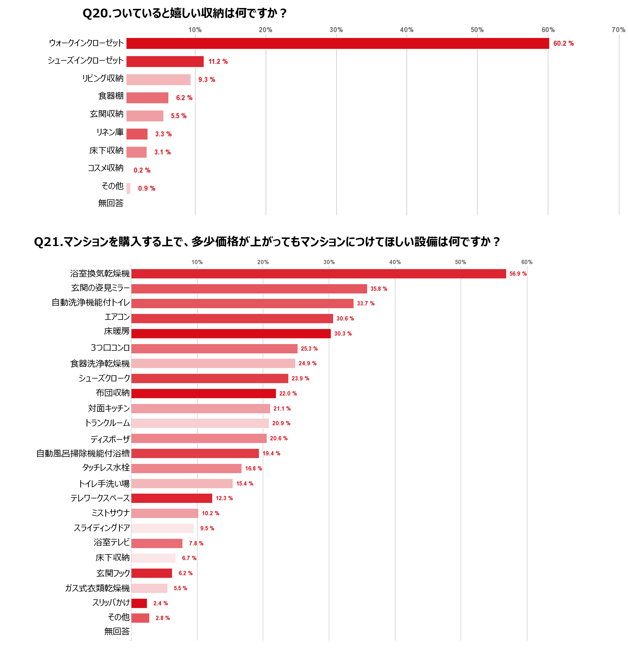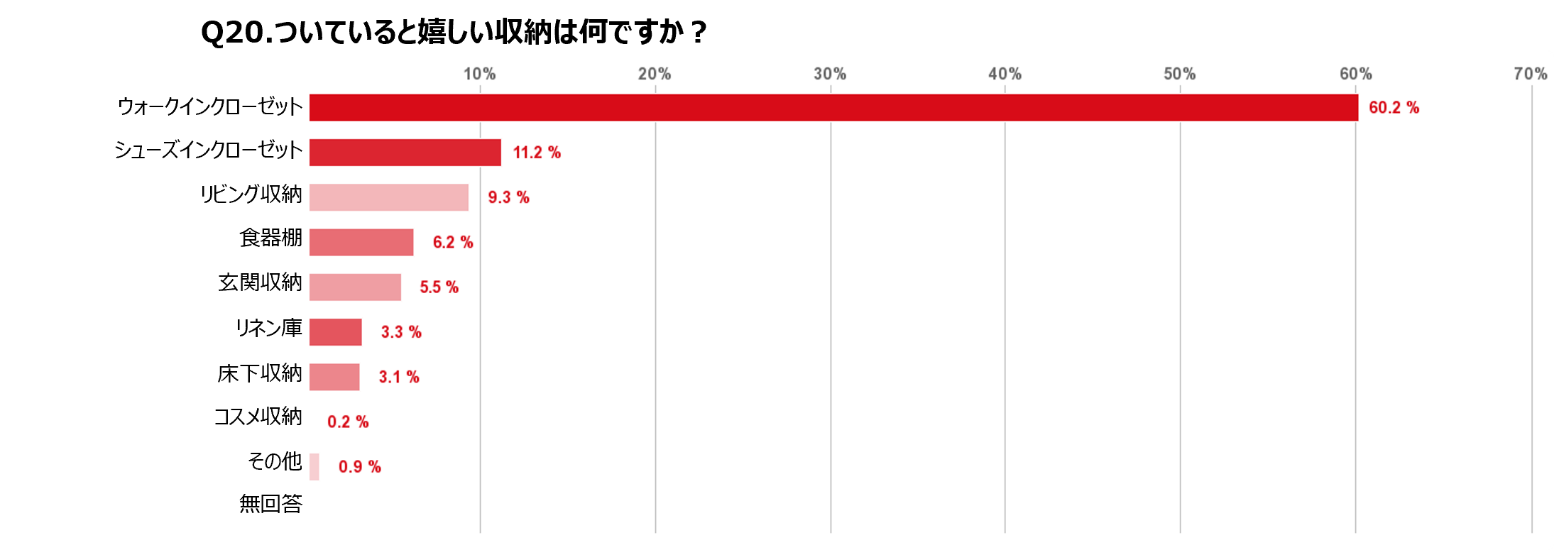 ■マンション購入時に気になる収納。その中でもウォークインクローゼットは圧倒的なニーズがあり、女性が選ぶ部屋としては優先度が非常に高いということがわかった。