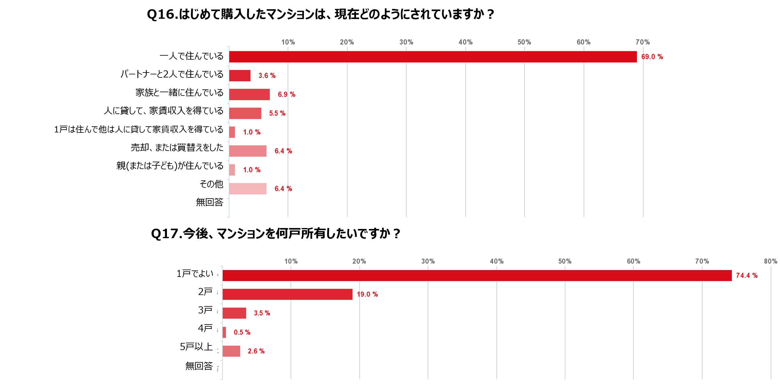 また、購入後、今後の人生で2戸以上のマンションの所有を希望しているが4人に1人という結果に。