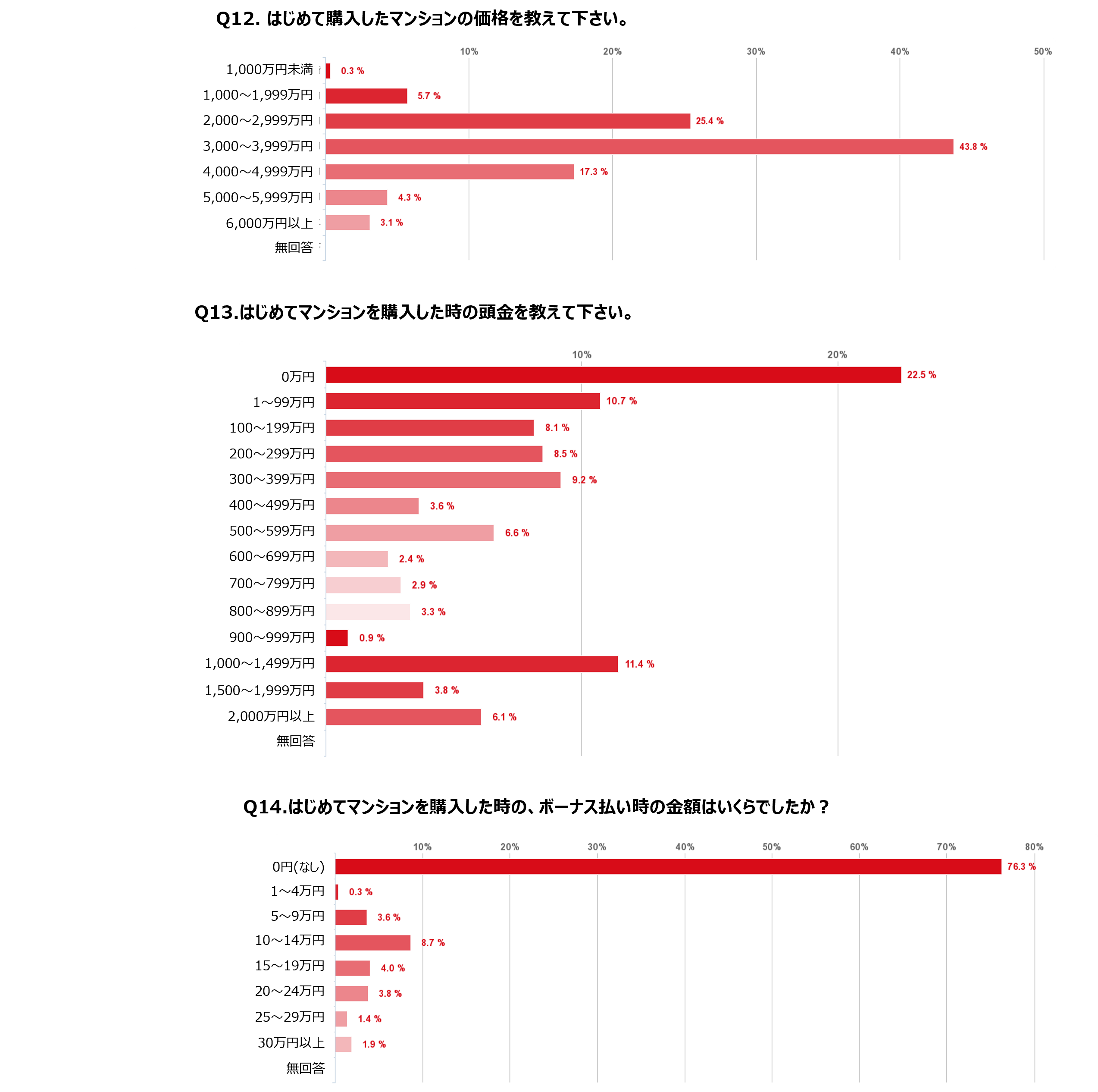 ■はじめて購入したマンションは「3,000万円台が最も多く(43.8%)4割以上を占めた。