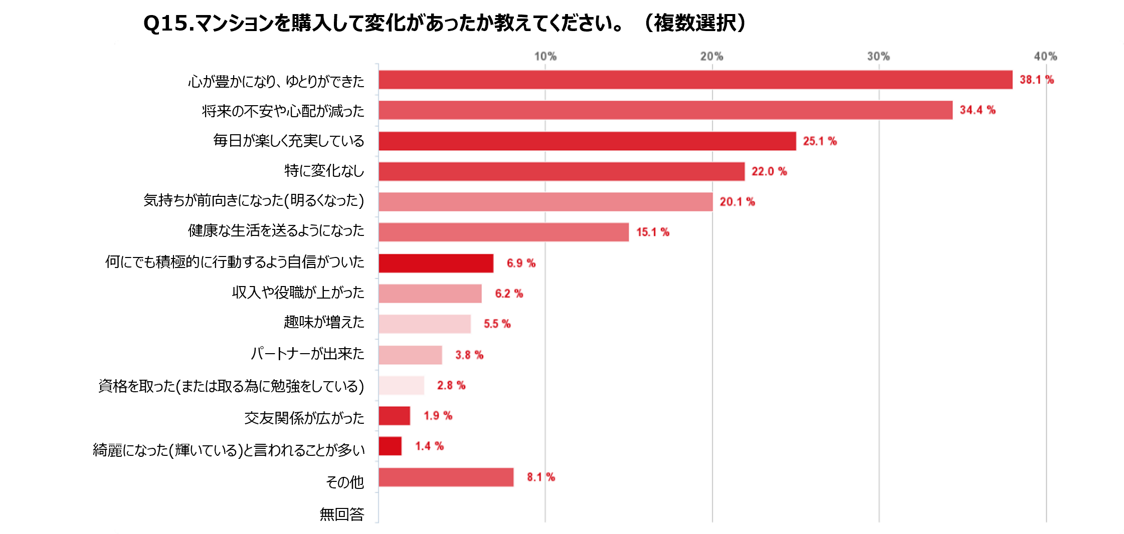 ・マンション購入により「心が豊かになりゆとりが出来た」と答える人が約4割。