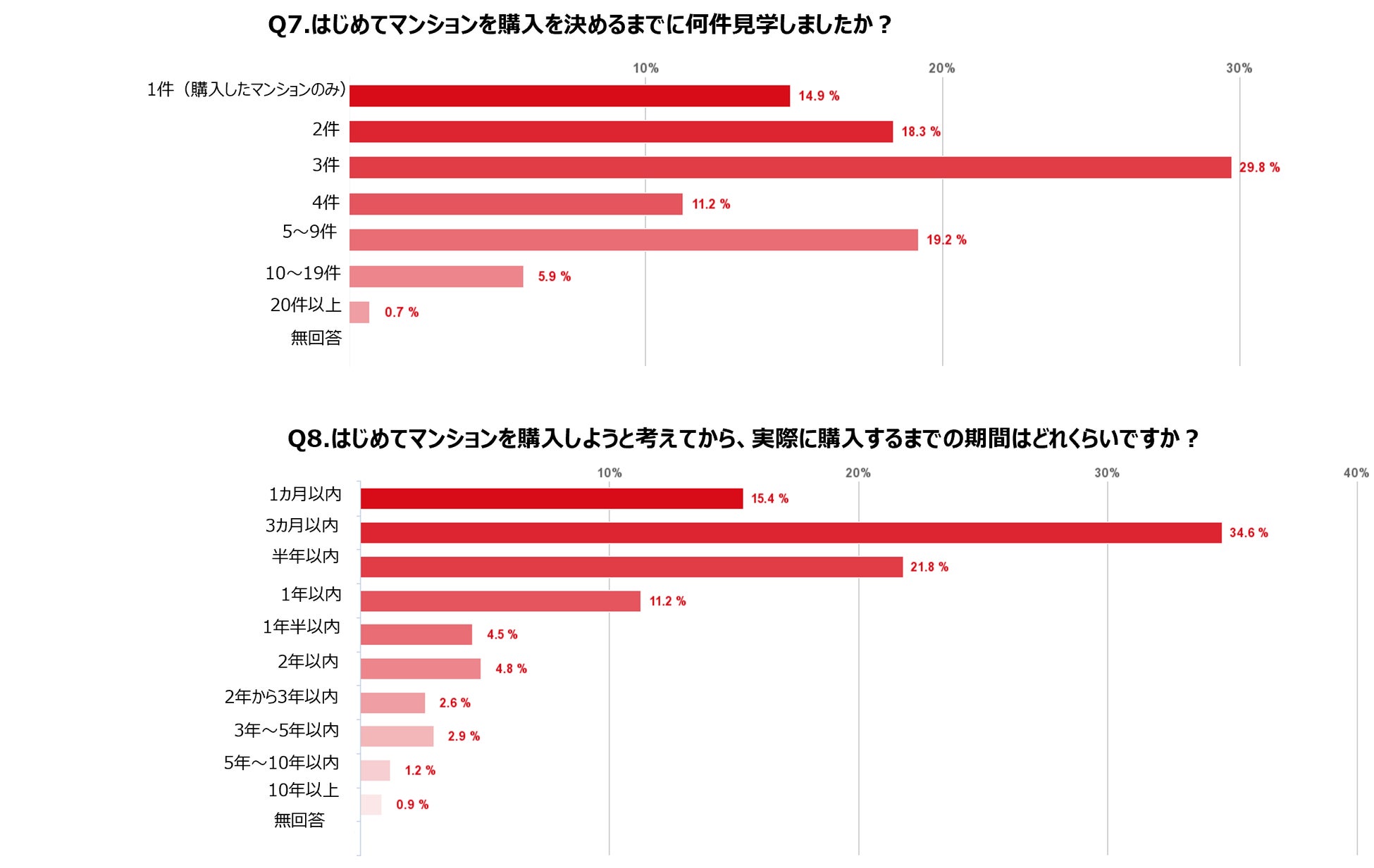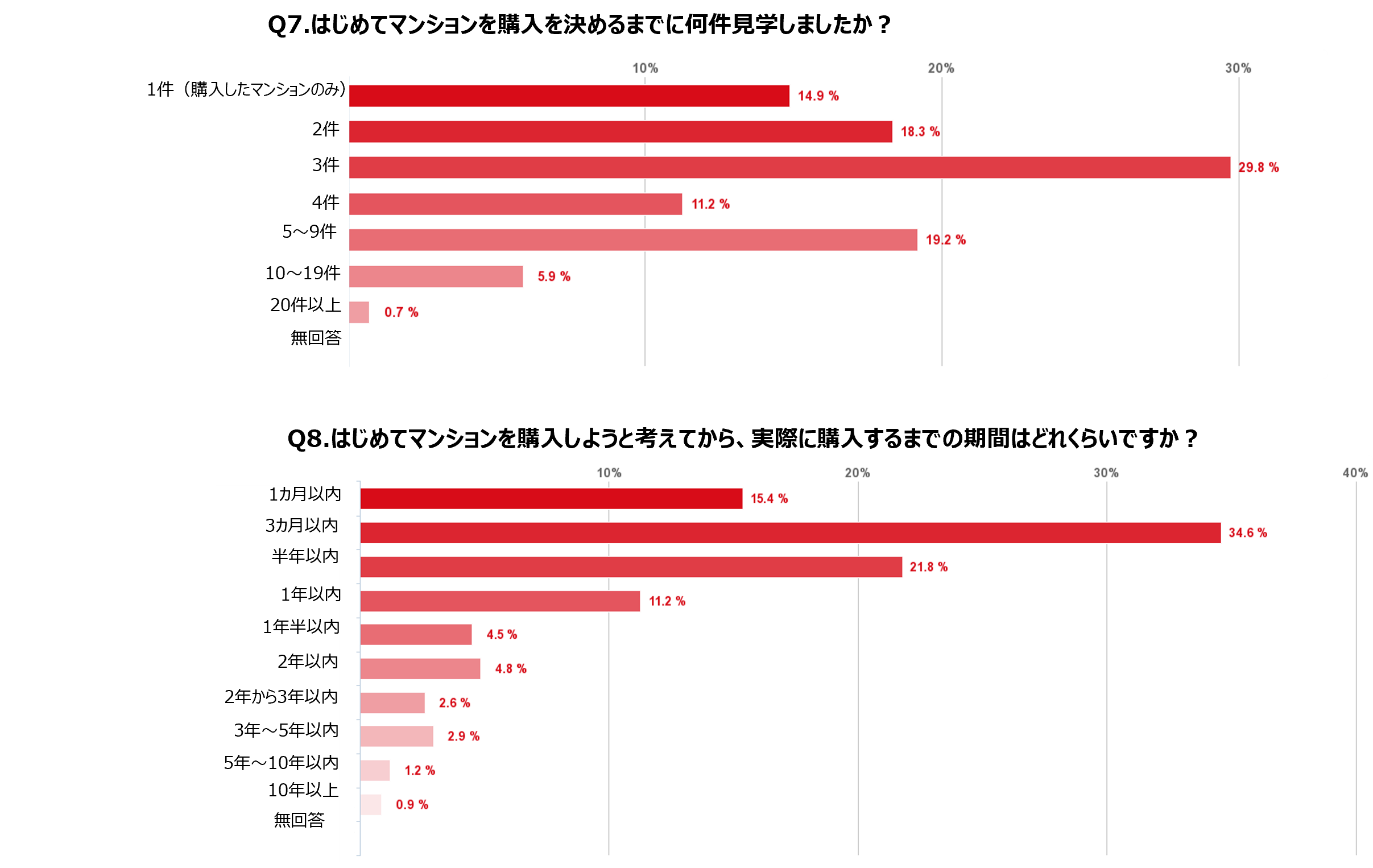 ・初めてのマンション購入を決めるまでにかける期間は、半数以上が3か月以内。