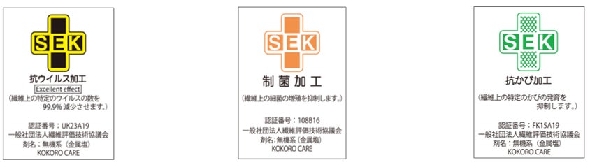 製品に使用されている「DEOFACTOR® Antivirus」は制菌加工・抗ウイルス加工・抗かび加工において、厳しい審査をクリアした製品だけが認める「SEK(※2)」マークを取得しています。