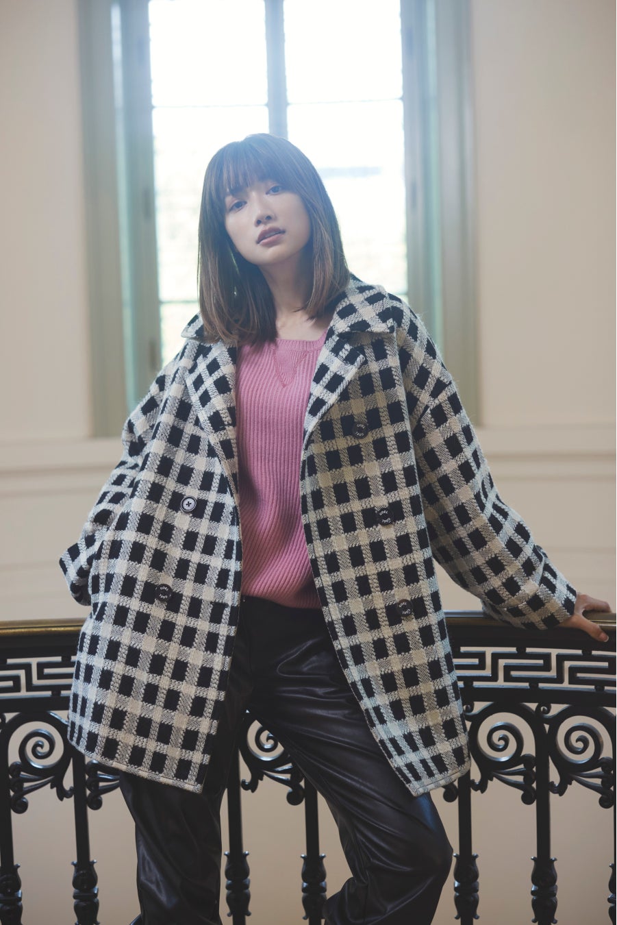 ■Thesaurusツィードチェックダブルコート(ブラック)¥104,500