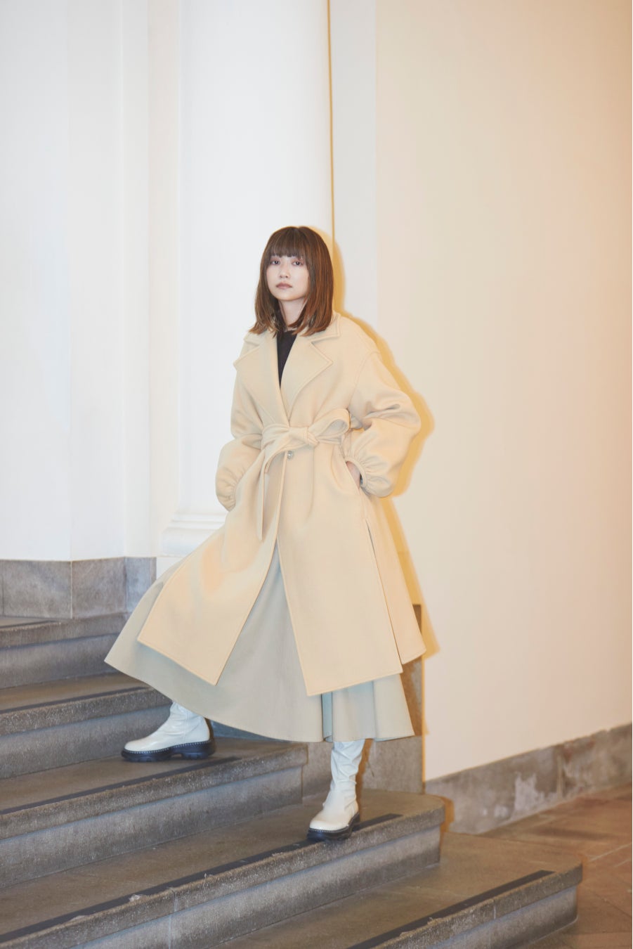 大きめなテーラードカラーにリラックスしたAラインのシルエットが大人なコート。袖はCOELらしくボリュームスリーブに、脇には深めにスリットを入れて抜け感をプラス。