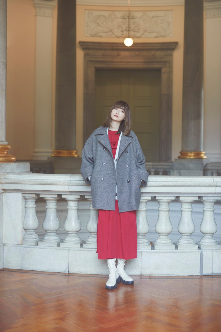 小慣れた雰囲気の出せるゆったりめのボクシータイプのピーコート。