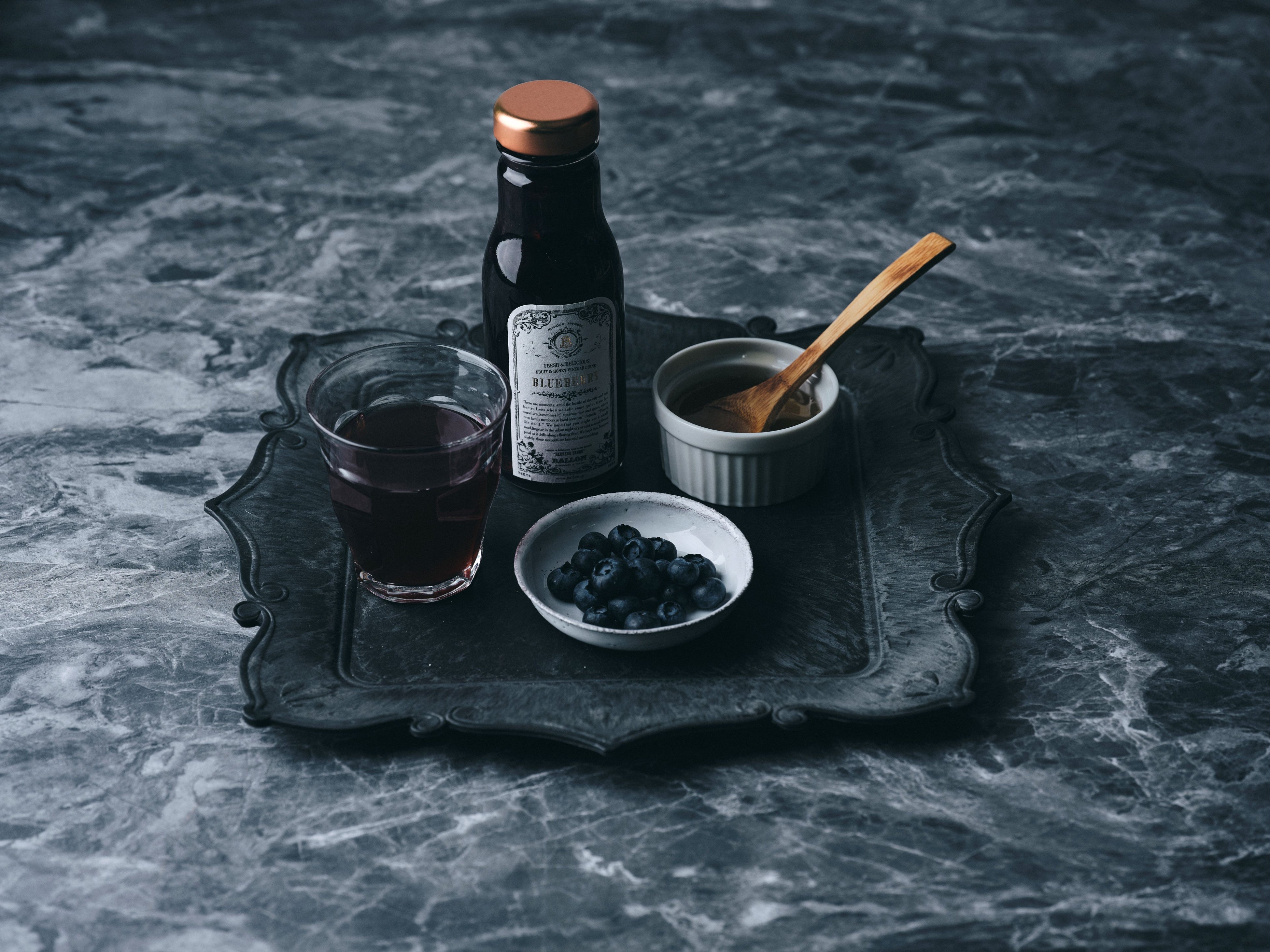 ビタミンEや強い抗酸化作用を持つアントシアニンを豊富に含むブルーベリーとハチミツを使用したビネガードリンク。