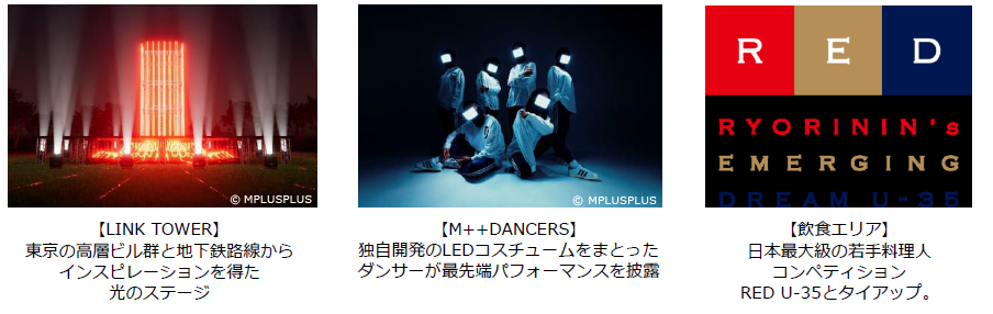 また、エリア全体にかかるテーマ曲の作曲を、アーティストのRay Kunimoto氏が担当。エリアを鑑賞し、音楽を聴く観客と、作品自体が置かれている空間との間に親密なつながりを生み出します。加えて、高度な映像技術と先端テクノロジーを活用し、今までにないライブエンターテインメントと新たな体験空間を創造する株式会社IMAGICA EEX が全体の空間をプロデュースします。