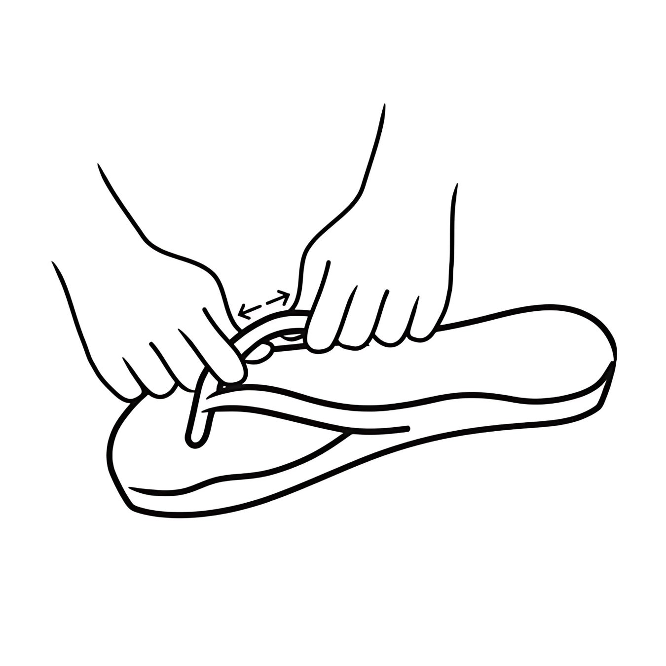 アーチーズは足への優しさを考え、あえてタイトな設計でサンダルが足からずれにくくなっています。ご着用から数日でソールが足のかたちになじんでいきますが、鼻緒や甲回りが「きつすぎる」と感じる場合は、ストラップを少しずつ引っ張ることで自分フィット感を調整できます。