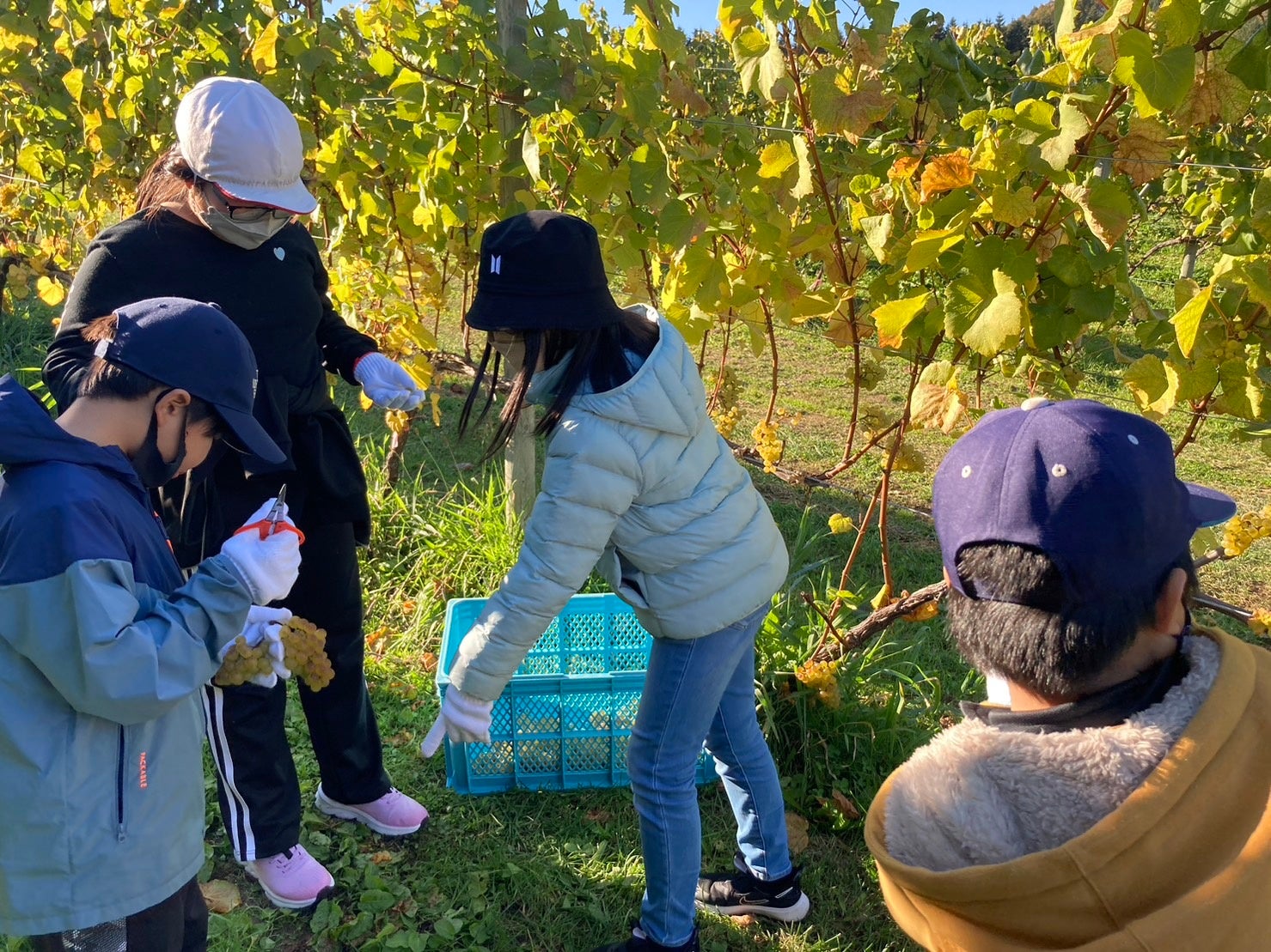 北海道・仁木町で生まれ育つ子どもたちの「生きる力」と「ふるさと仁木」への愛着を醸成するため、仁木町を代表する観光資源であるワイン産業について理解を深めてもらうことを目的としています。同町の小学校に通う4年生を対象とし、ワインの製造過程を体験してもらう事業で、今回で3年目の事業です。グループ会社であるDAC未来サポート文化事業団が運営協力をし、10月「収穫」、11月「醸造」、翌年2月「ラベル貼り」の全3回を体験授業としてNIKI Hills Wineryで受け入れています。