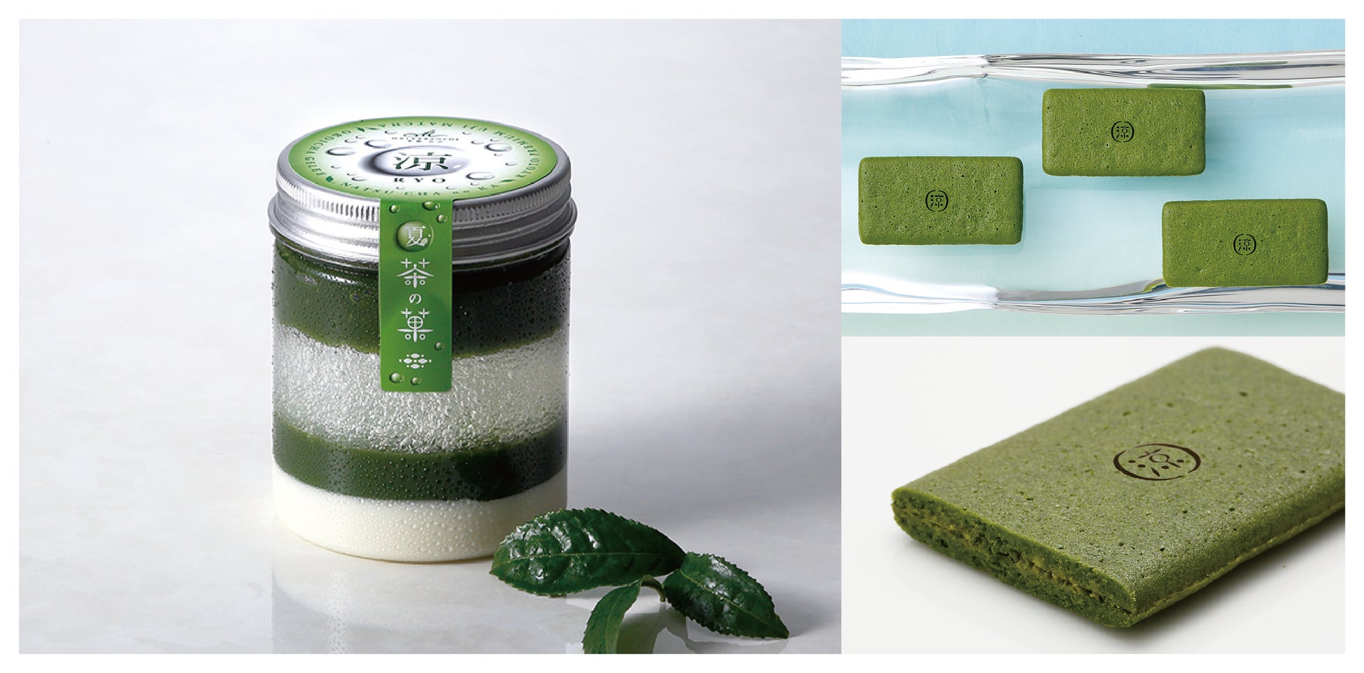 【左】:夏茶の菓「涼」税込¥1,080/【中】:夏茶の菓「茶」税込 ¥1,080/【右】:夏茶の菓「贅」税込 ¥2,160