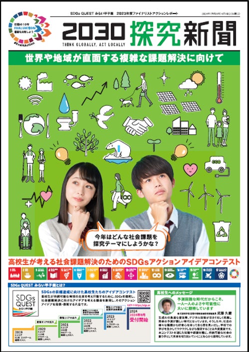 2023年度全国229チームのファイナリストのSDGsアクションアイデアは、本年度の探究学習のヒントとなるように、QRコードによるプレゼン動画を掲載した普及啓発媒体「2030探究新聞」として発行し、対象エリアの全ての高校に配布しています。