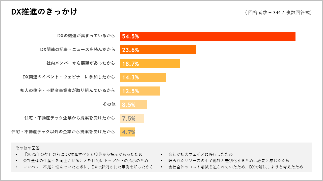 ● DXに取り組もうと思ったきっかけ、1位は「DXの機運が高まっているから」